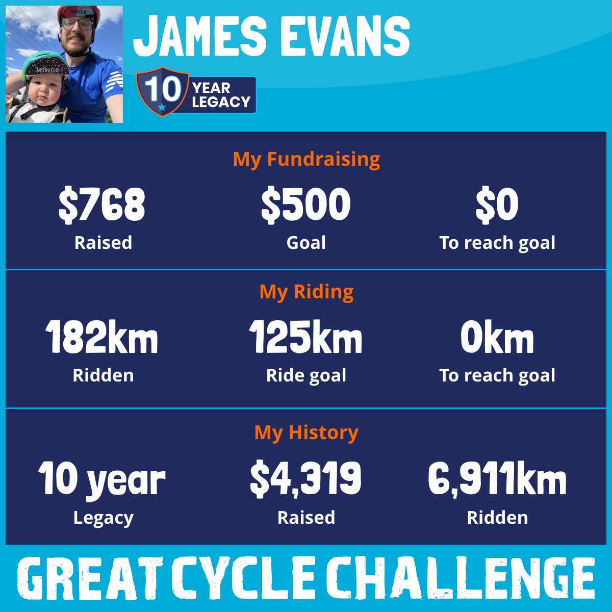 And so I am riding and raising funds to support the Children's Medical Research Institute to continue their work into the prevention, diagnosis, treatment and finding a cure for childhood cancer.