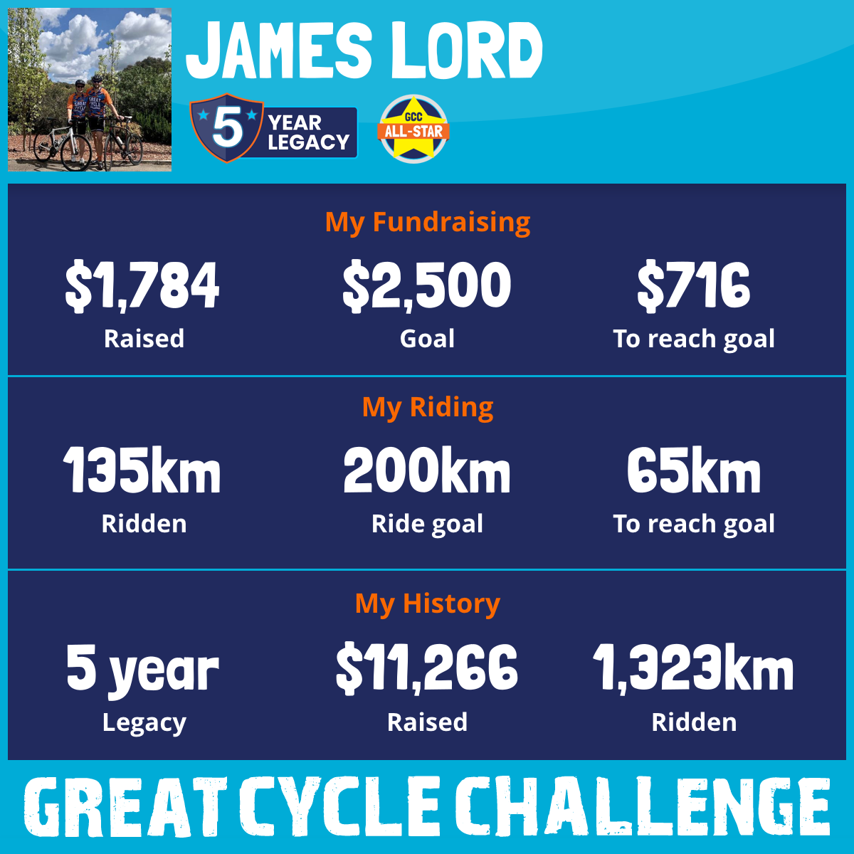135 km Ridden$1,784 Raised2026