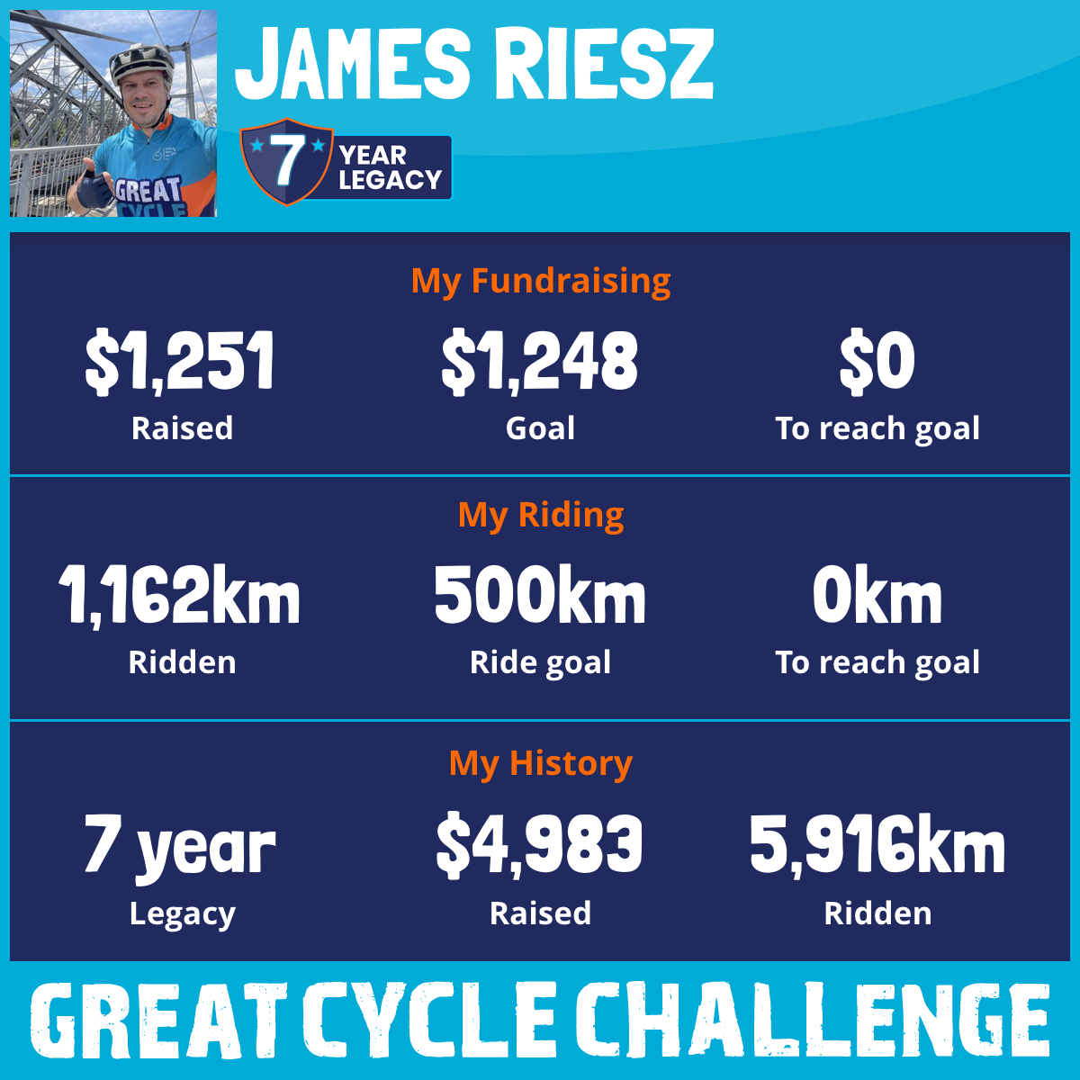 1,162 km Ridden$1,251 Raised2026