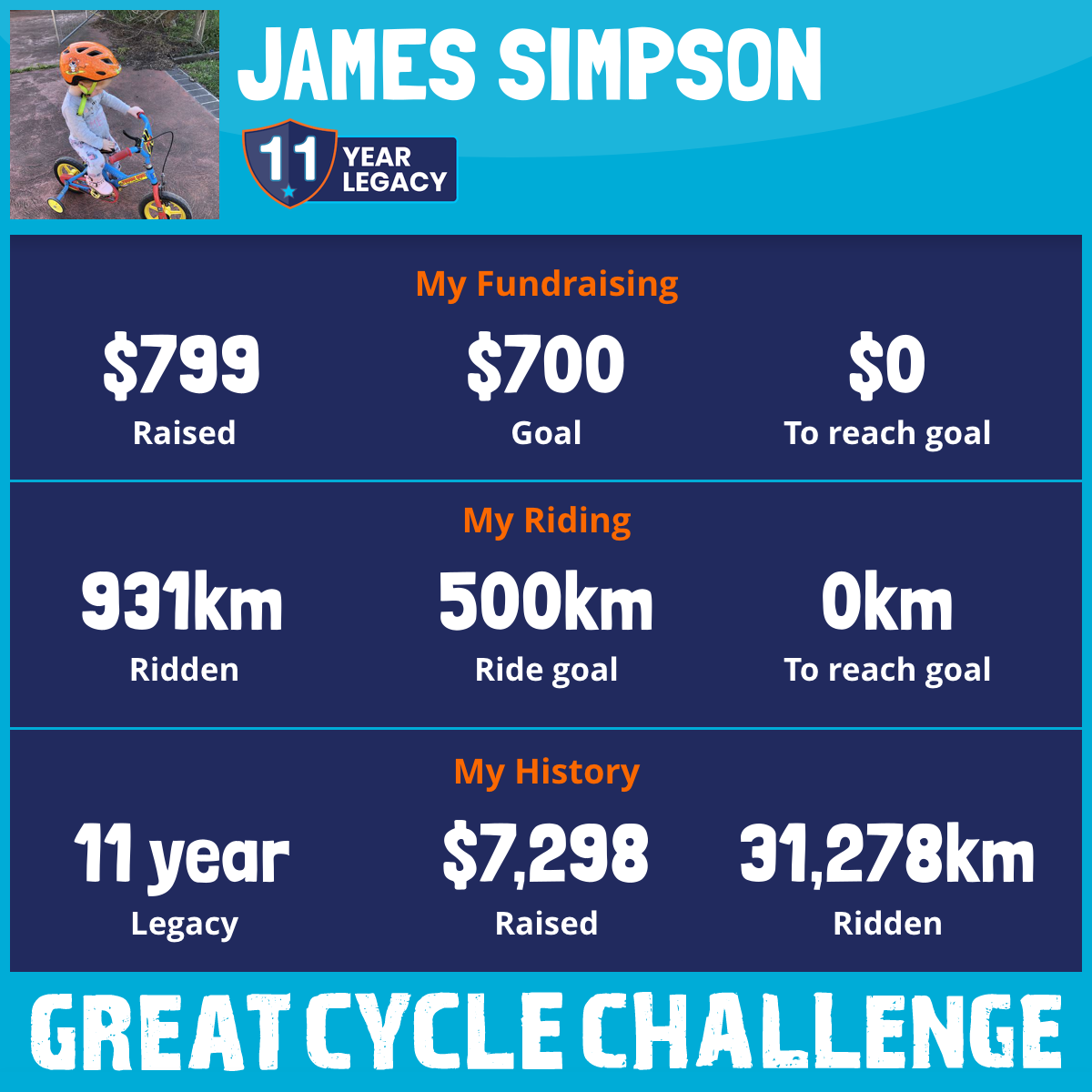 And so I am riding and raising funds to support the Children's Medical Research Institute to continue their work into the prevention, diagnosis, treatment and finding a cure for childhood cancer.