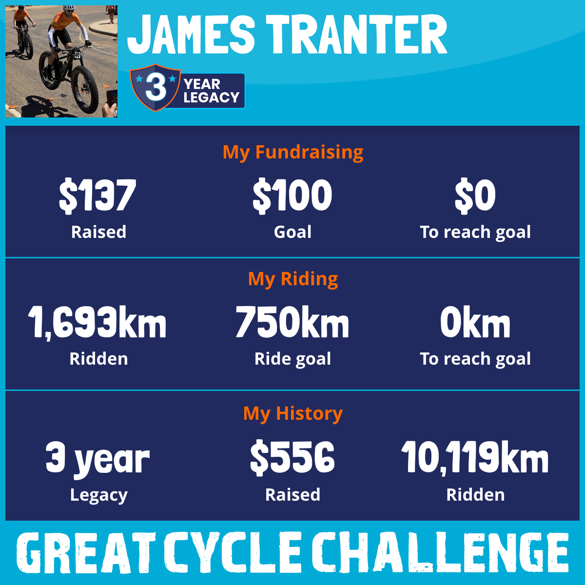1,693 km Ridden$137 Raised2026
