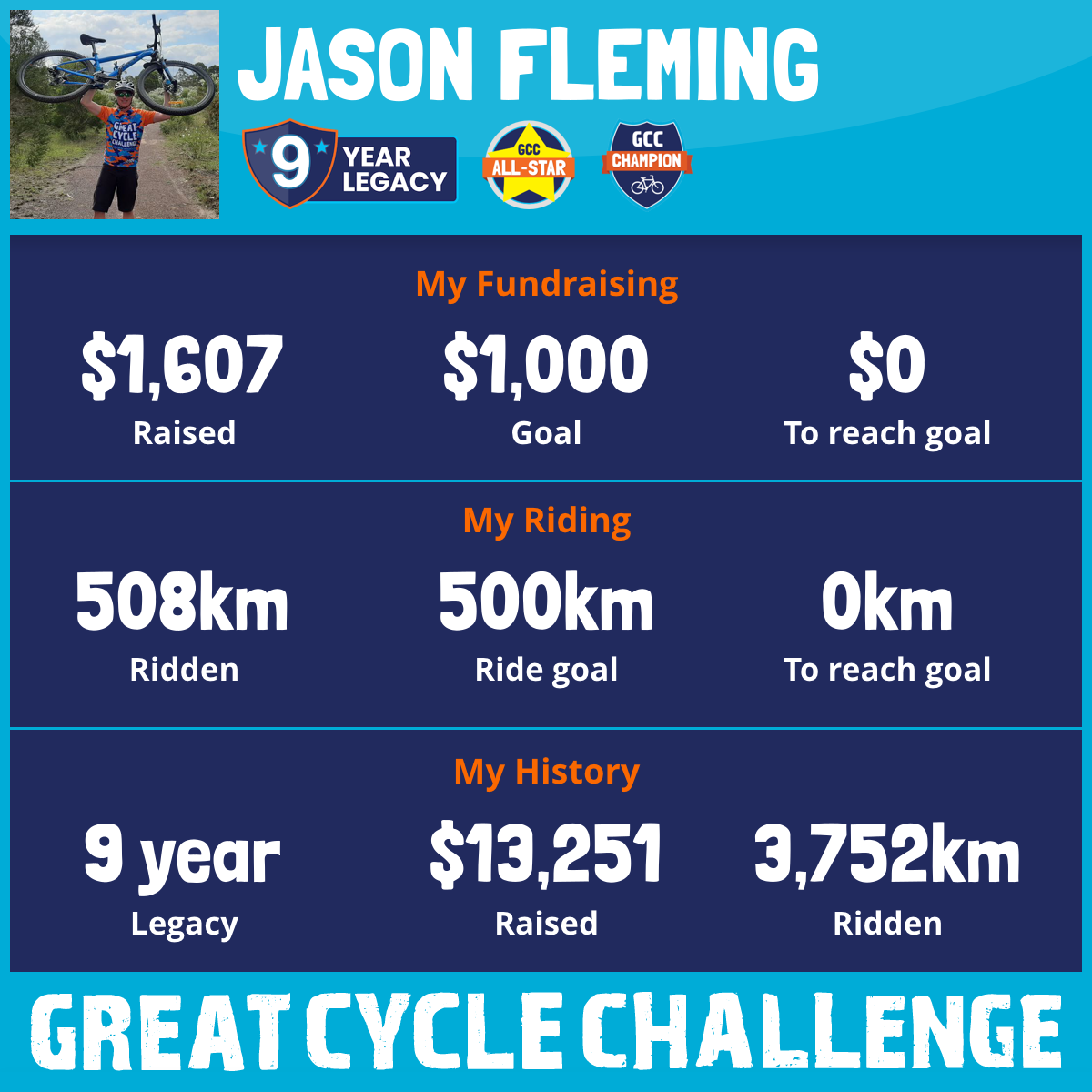 508 km Ridden$1,607 Raised2026