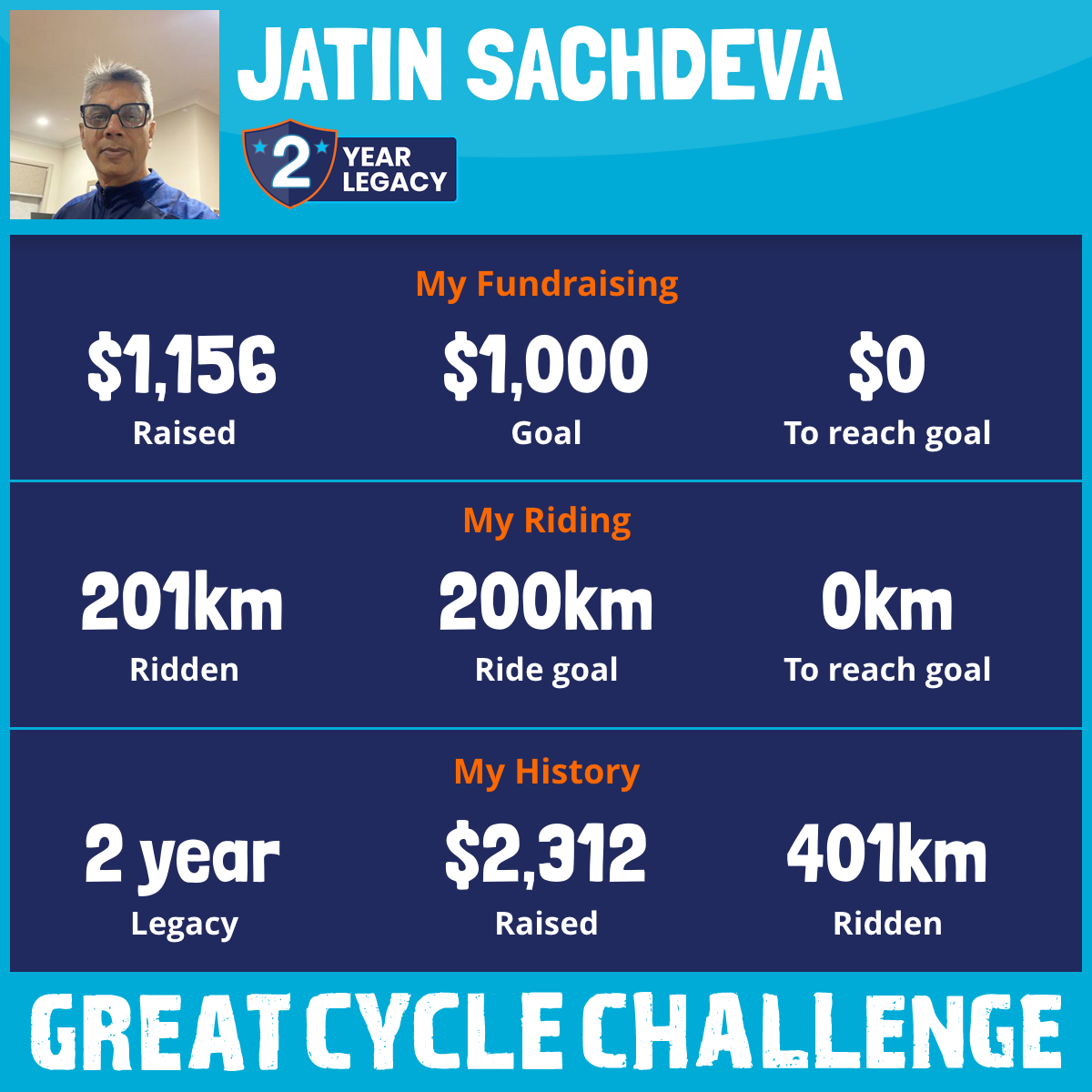 201 km Ridden$1,156 Raised2026