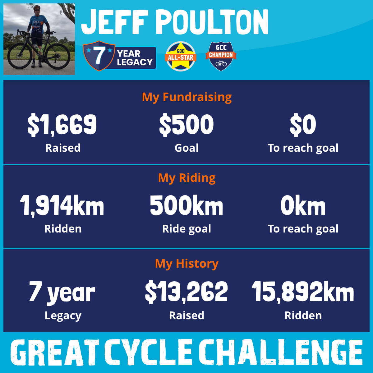 1,914 km Ridden$1,669 Raised2026