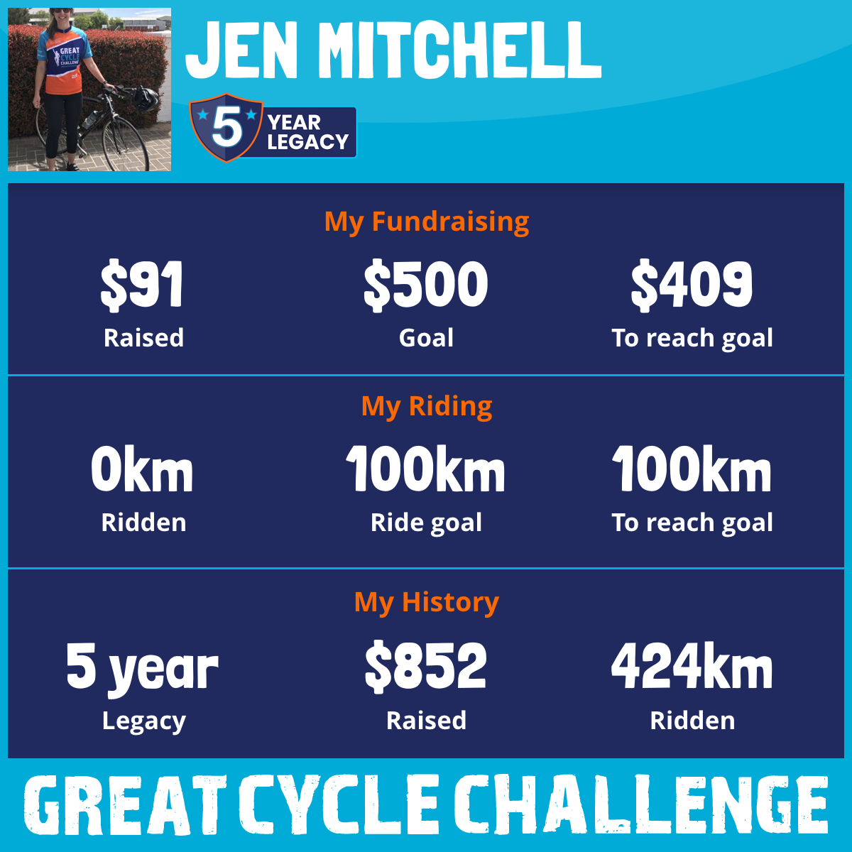424 km Ridden$725 Raised2017