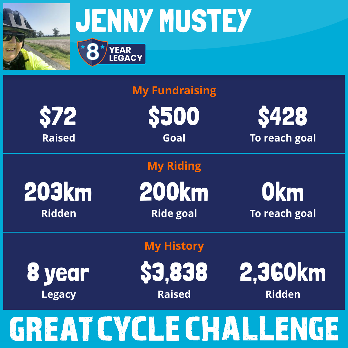 203 km Ridden$72 Raised2026