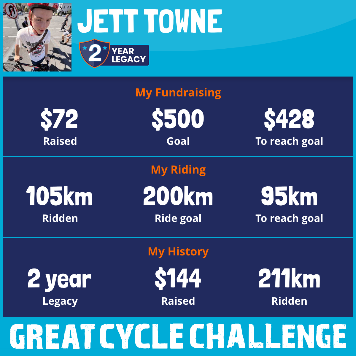 105 km Ridden$72 Raised2026