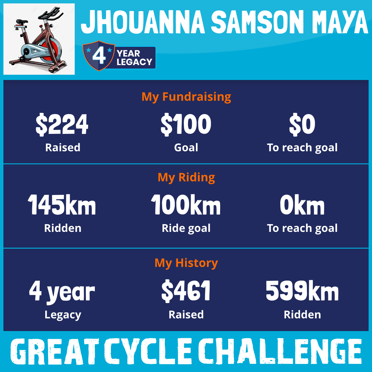 145 km Ridden$224 Raised2026