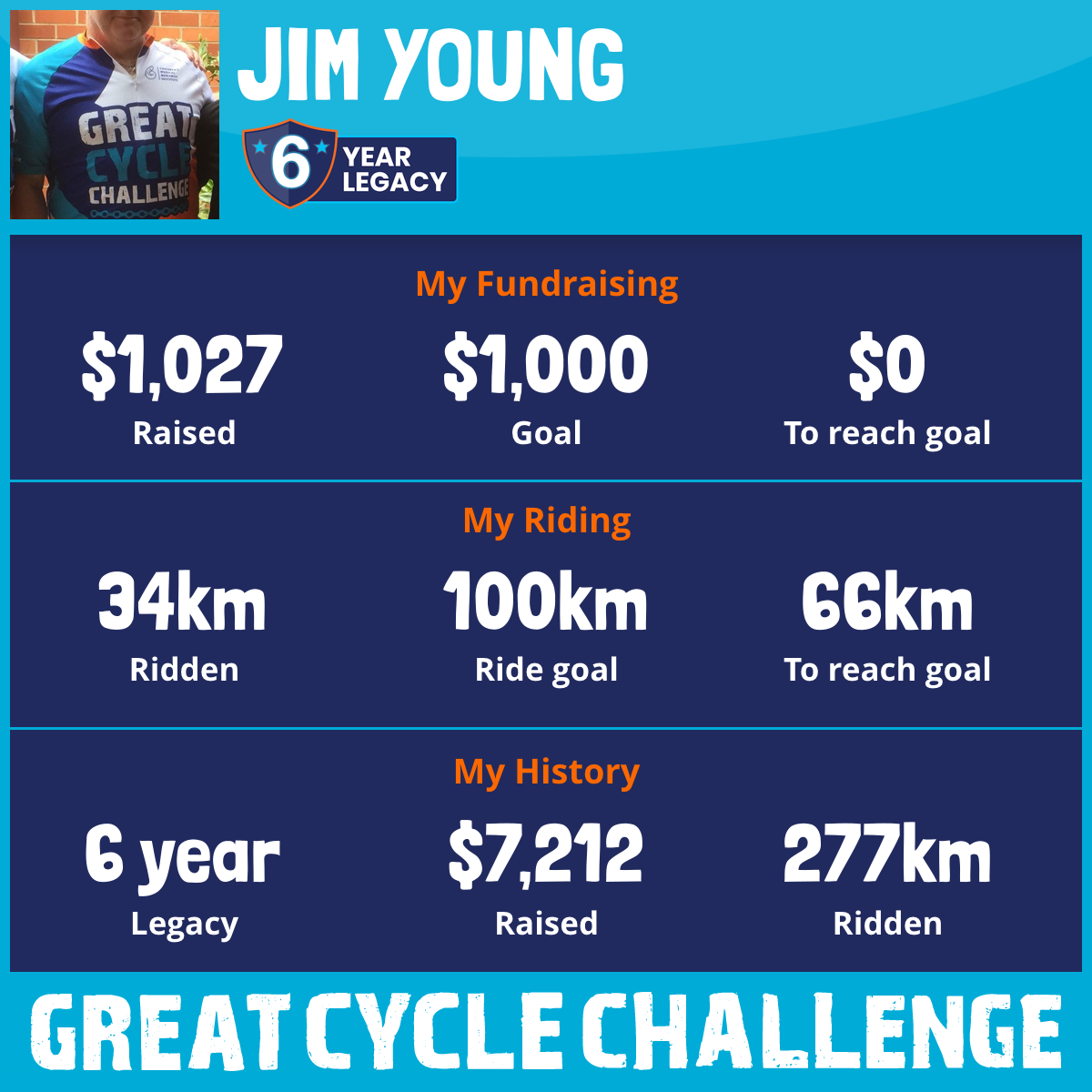 34 km Ridden$1,027 Raised2026