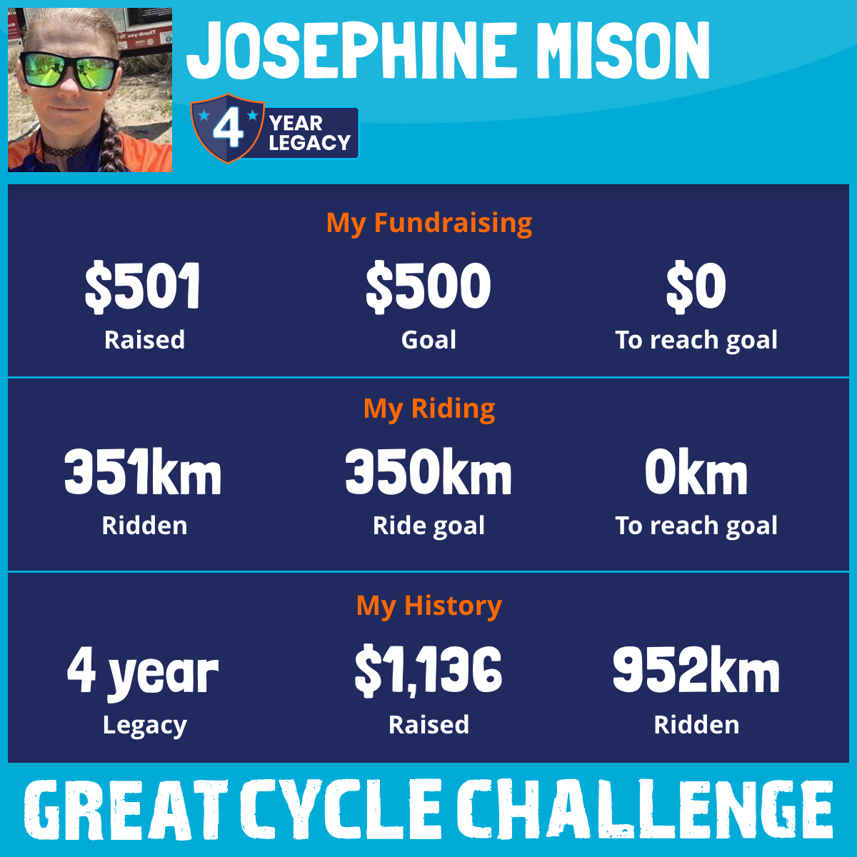 351 km Ridden$501 Raised2026
