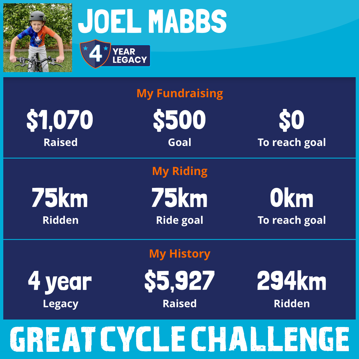 75 km Ridden$1,070 Raised2026