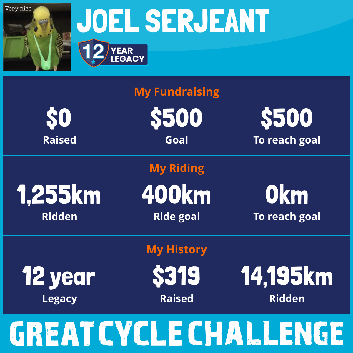 1,299 km Ridden$319 Raised2015
