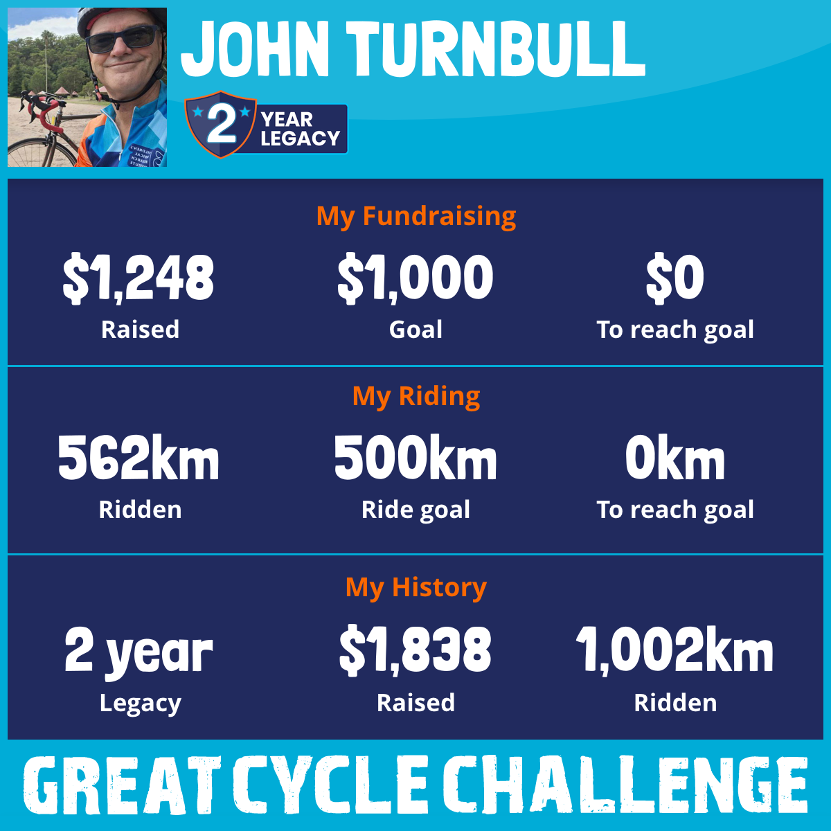 562 km Ridden$1,248 Raised2026