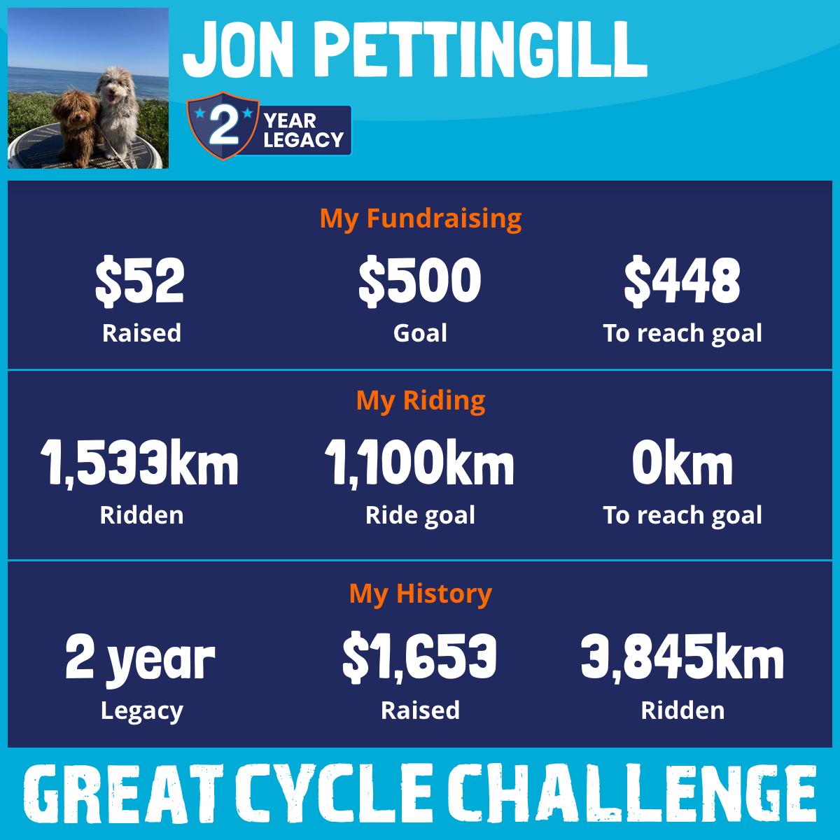 I am riding 1,100 km in memory of Thorpy. Please sponsor me and support my challenge to fight kids' cancer and save little lives.