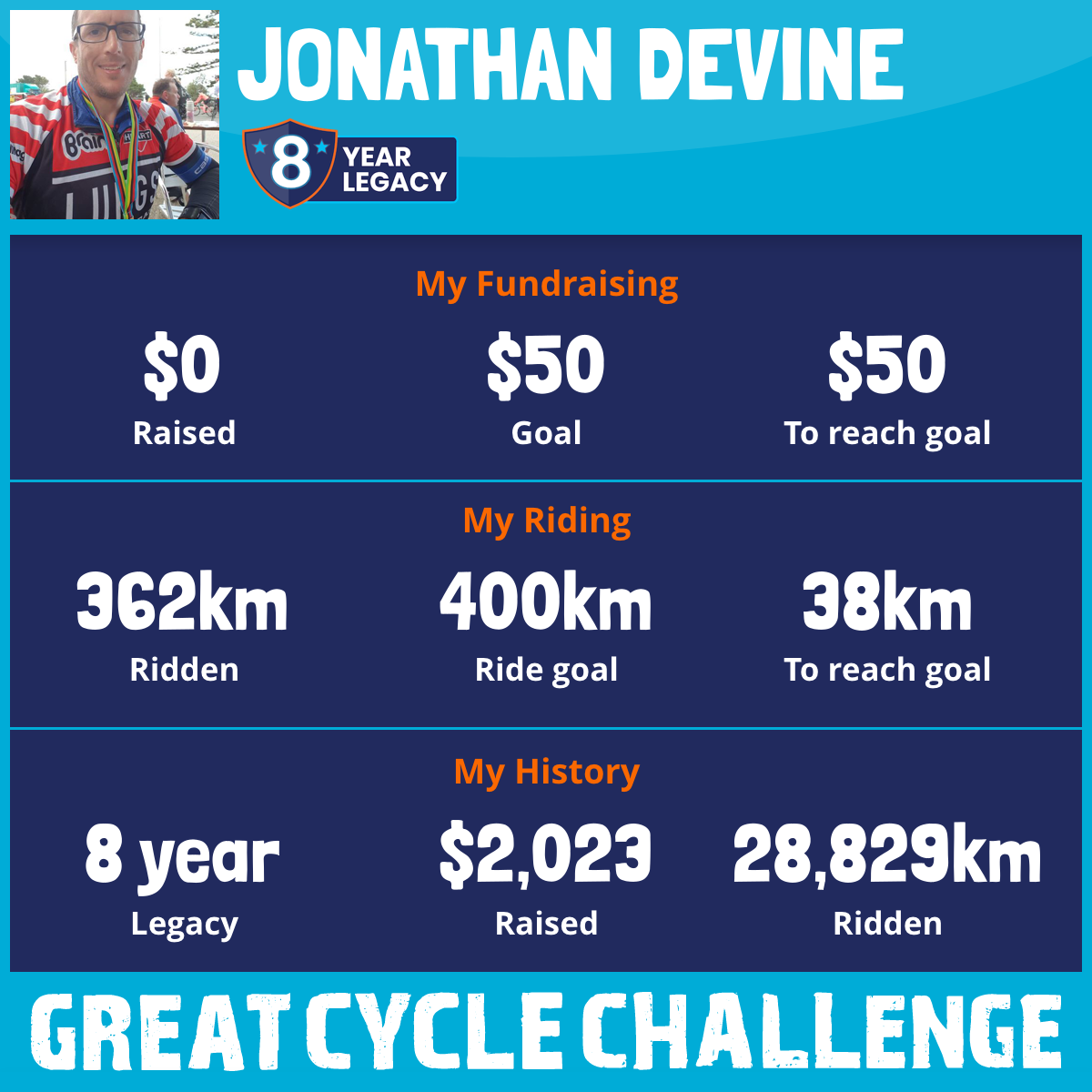 8,607 km Ridden$1,179 Raised2018