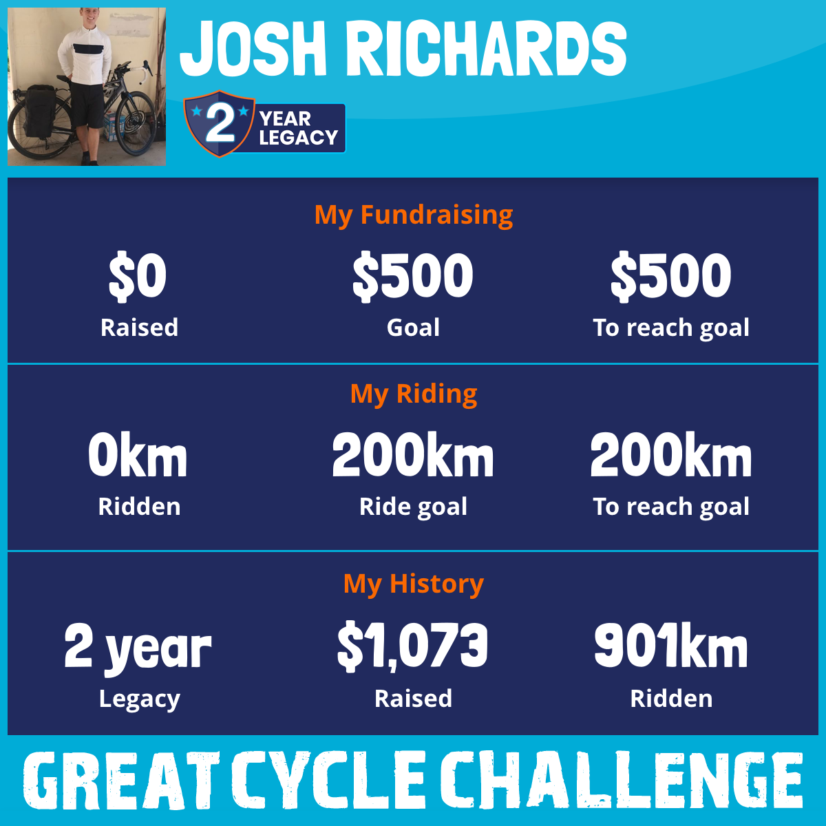 901 km Ridden$1,073 Raised2024