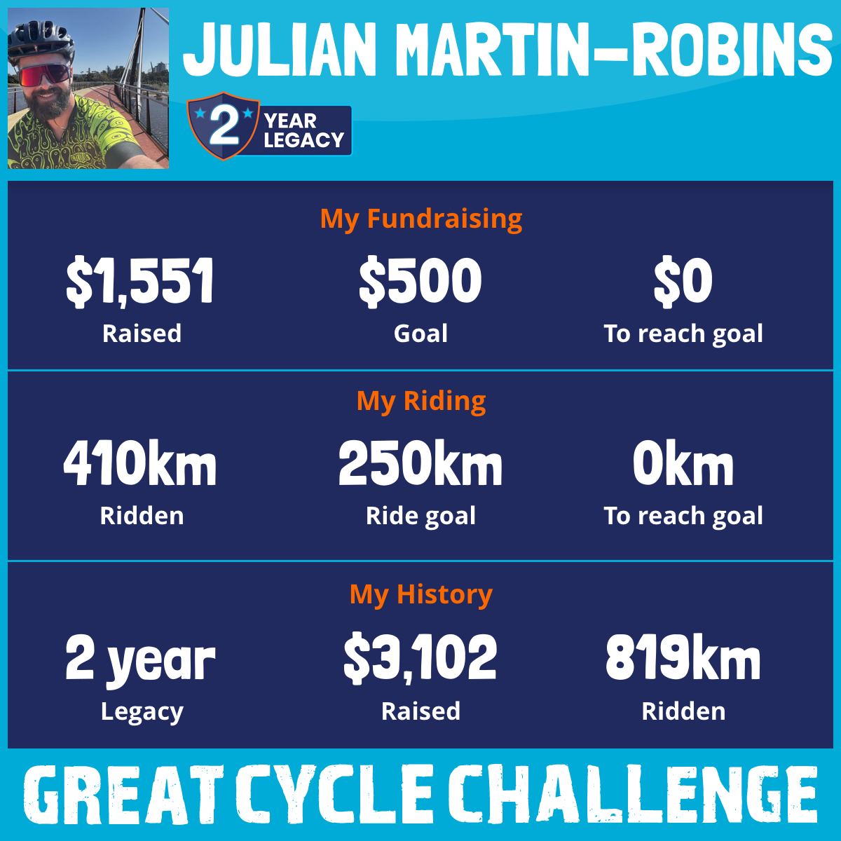 410 km Ridden$1,551 Raised2025