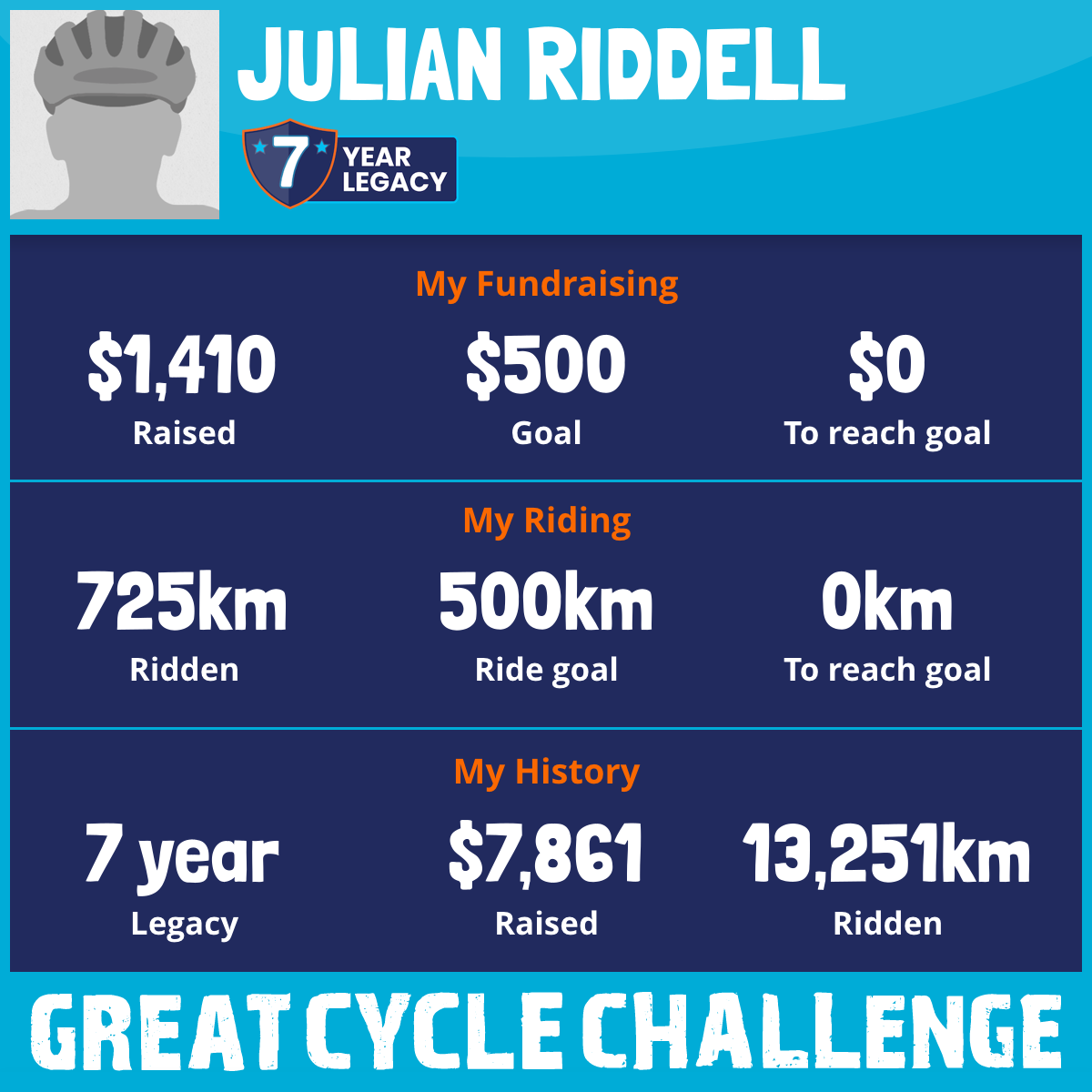 725 km Ridden$1,410 Raised2026