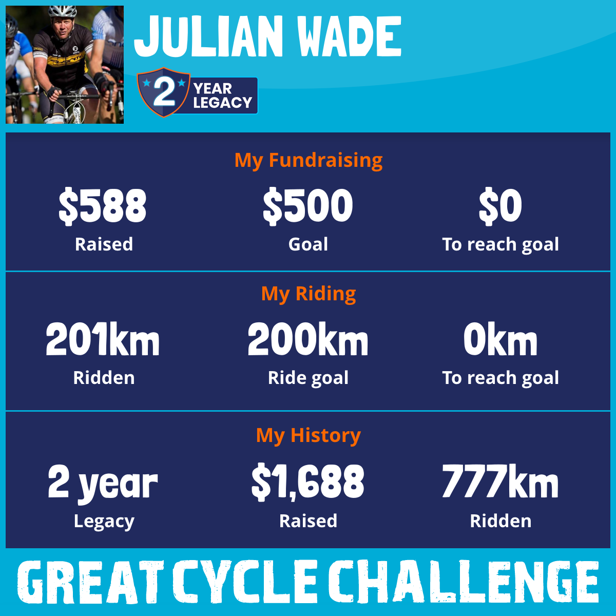 201 km Ridden$588 Raised2026