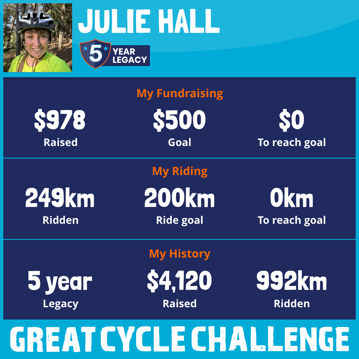 249 km Ridden$978 Raised2026