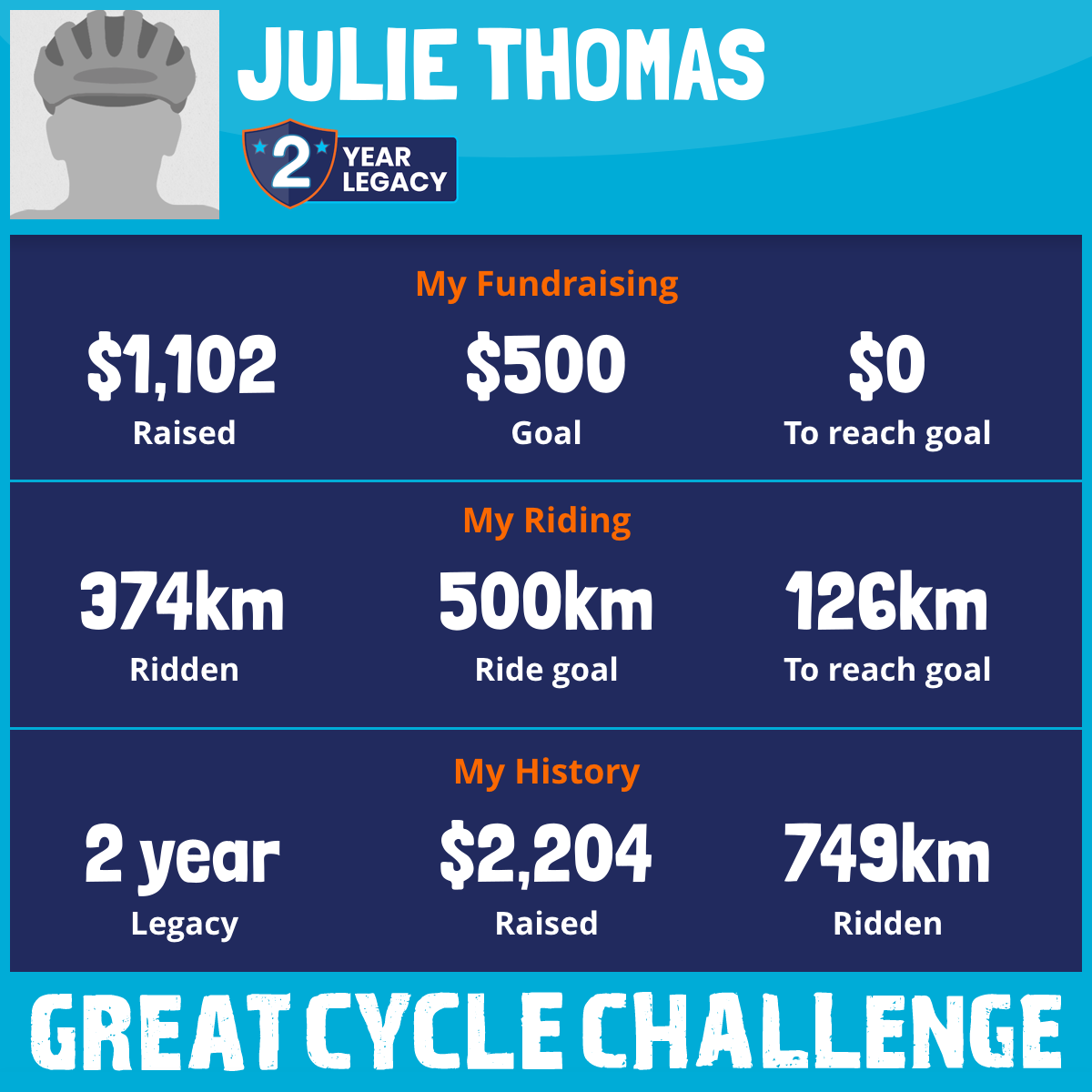 374 km Ridden$1,102 Raised2026