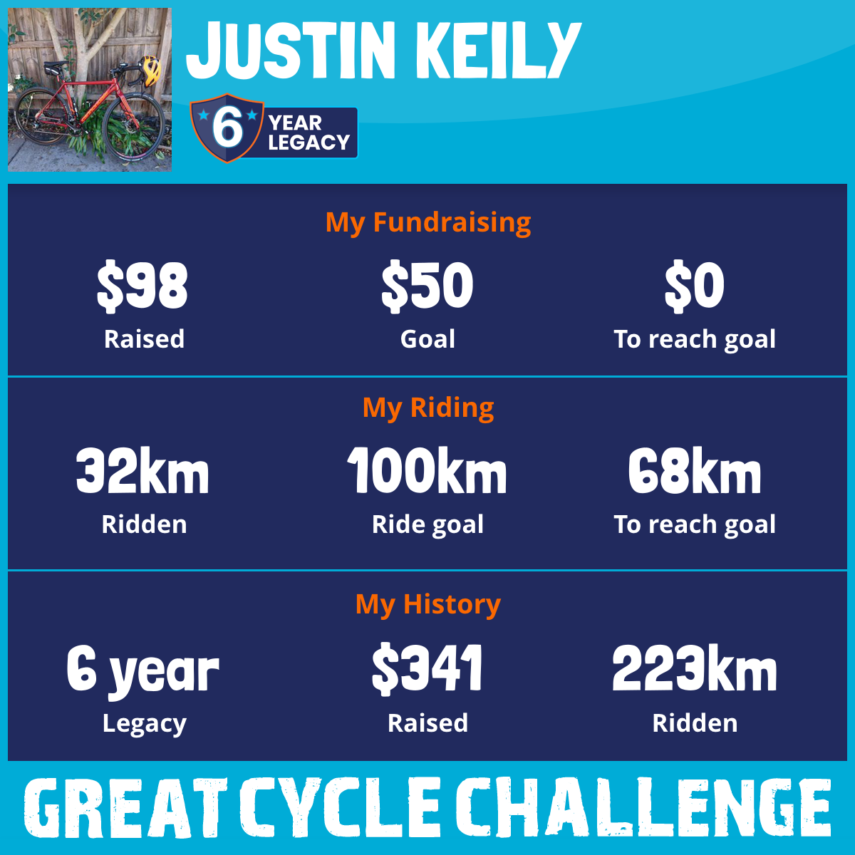 41 km Ridden$104 Raised2023