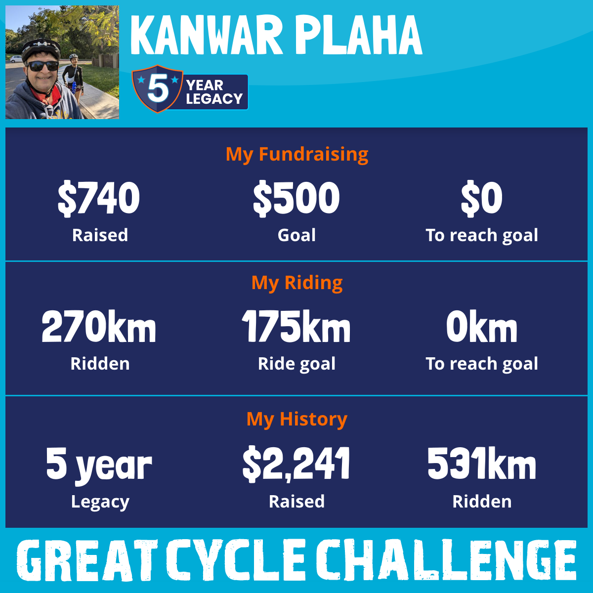 Once again, this October, I am taking part in the Great Cycle Challenge to fight kids' cancer! In the past 5 years, I've roughly ridden the distance from Sydney to Canberra, and hope to continue further.