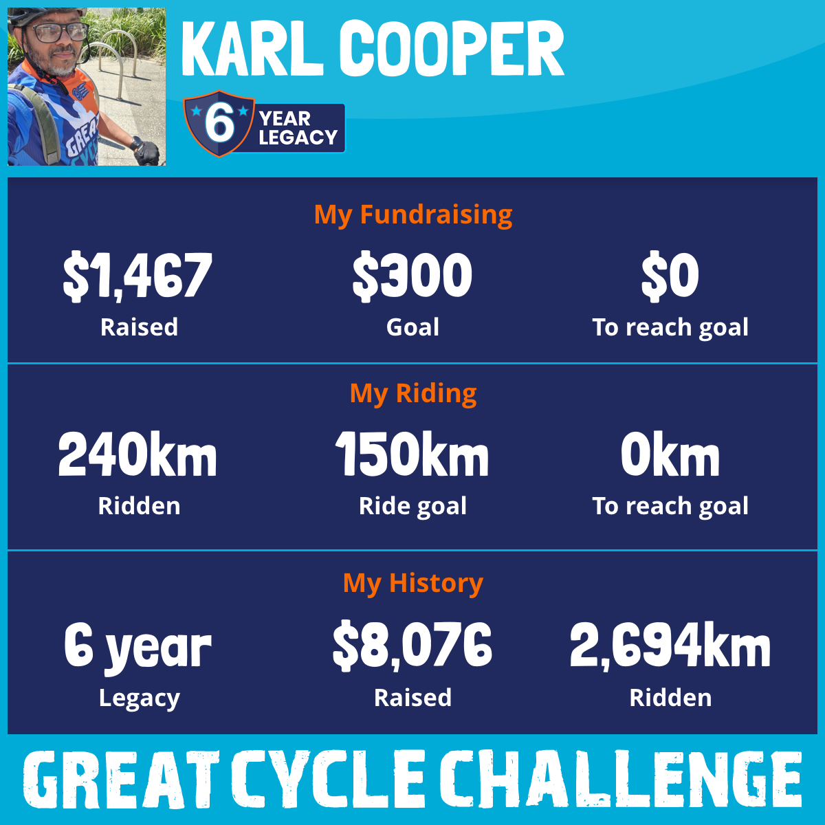 240 km Ridden$1,467 Raised2026