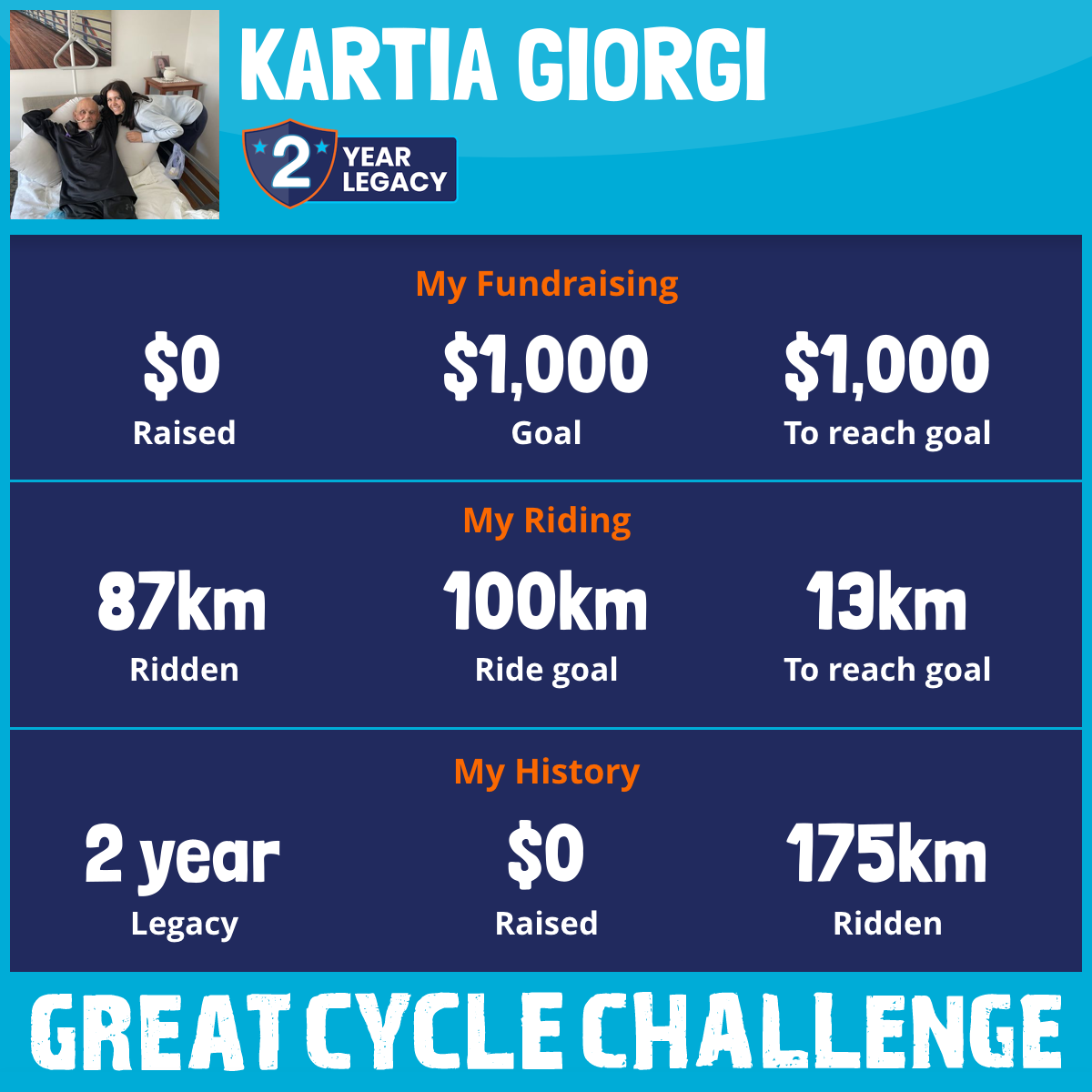 I am riding 100 km in memory of my grandfather, Nonno Sam. Please sponsor me and support my challenge to fight kids' cancer and save little lives.