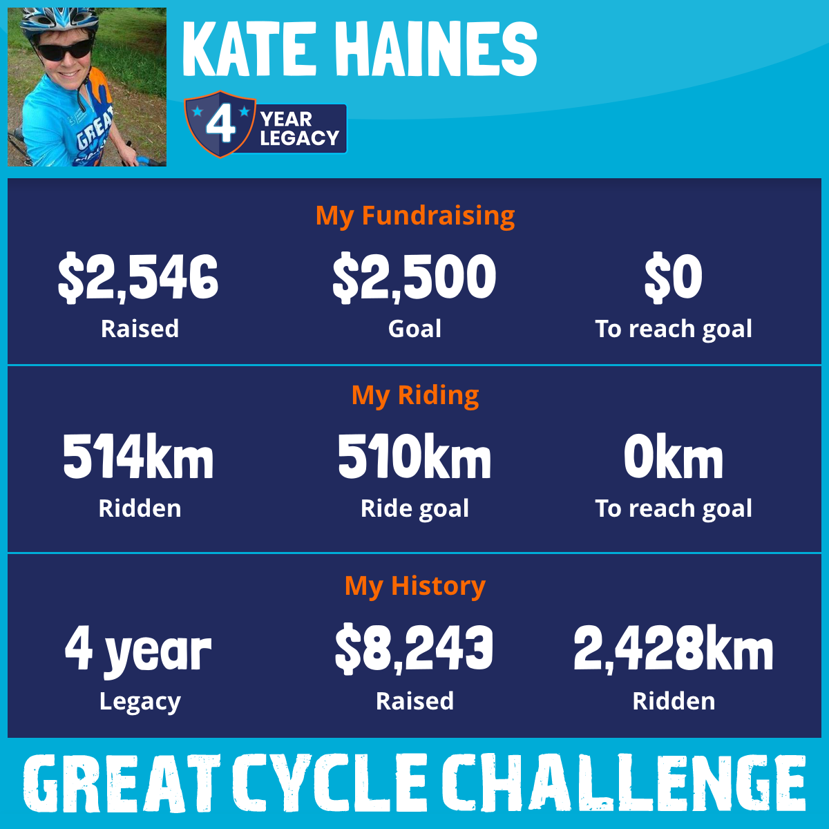 514 km Ridden$2,546 Raised2025
