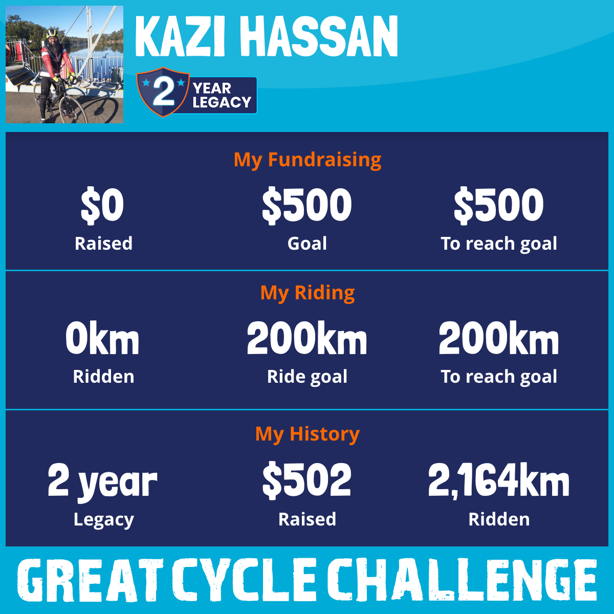 2,164 km Ridden$502 Raised2023