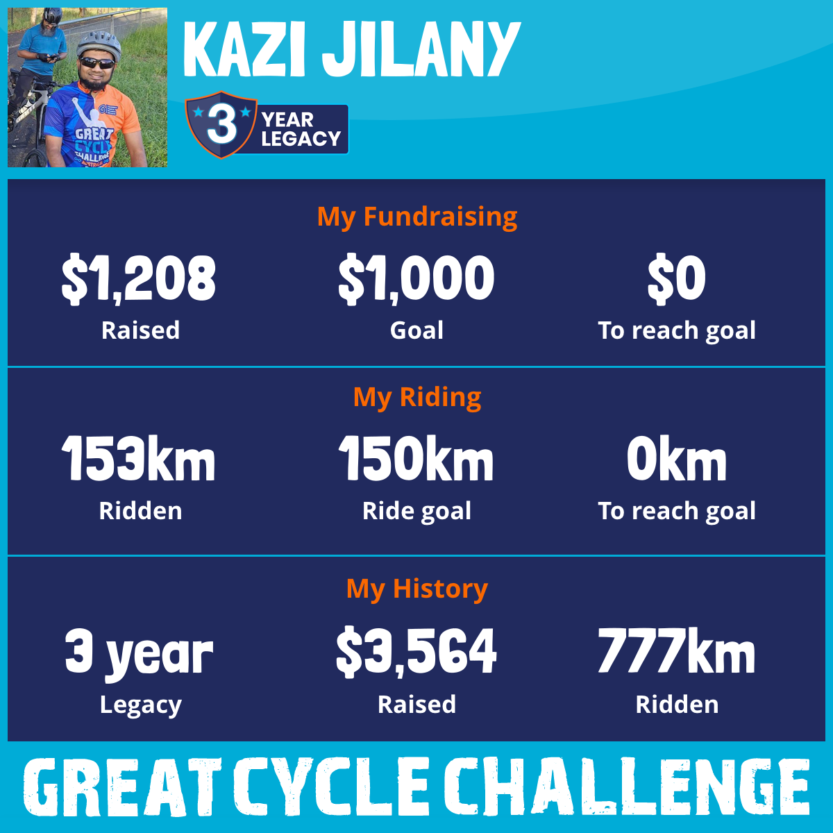 153 km Ridden$1,208 Raised2026