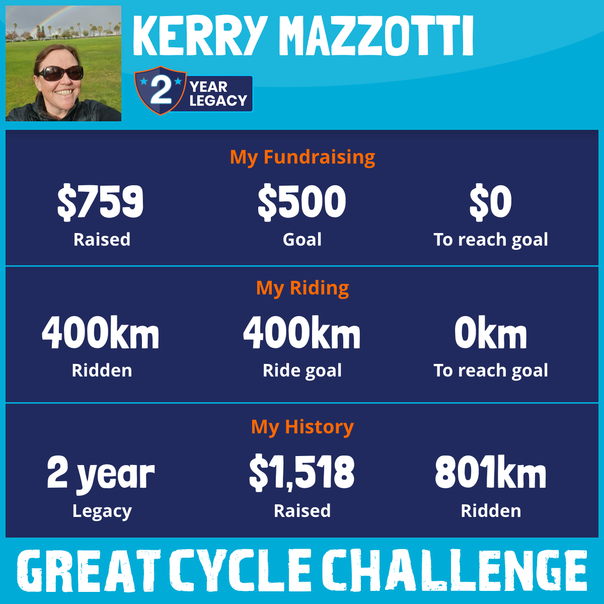 400 km Ridden$759 Raised2025