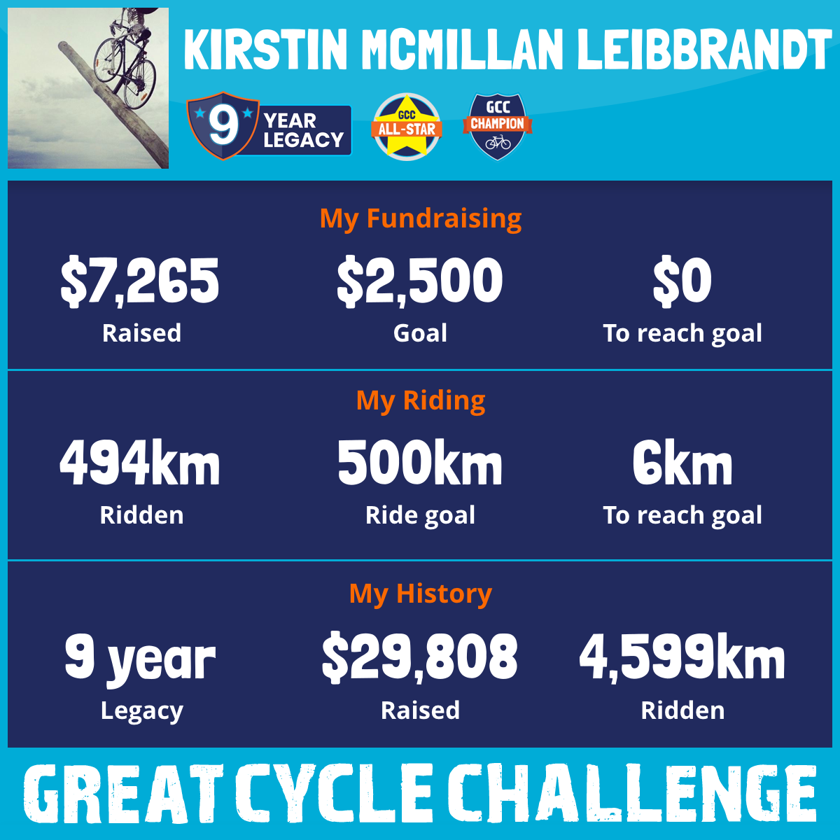 494 km Ridden$7,265 Raised2025