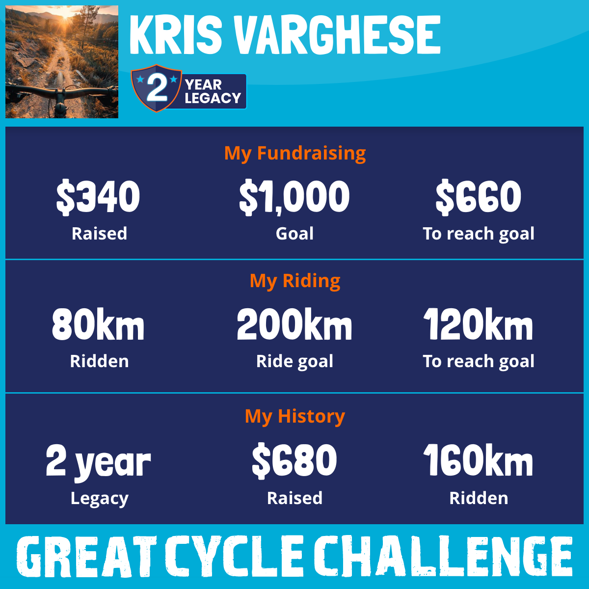 And so I am riding and raising funds to support the Children's Medical Research Institute to continue their work into the prevention, diagnosis, treatment and finding a cure for childhood cancer.
