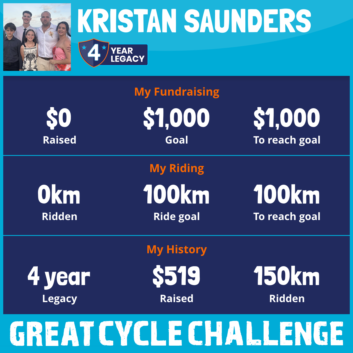 150 km Ridden$519 Raised2020