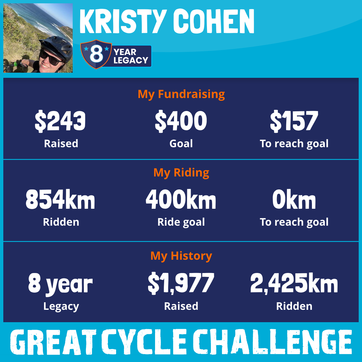 854 km Ridden$243 Raised2026