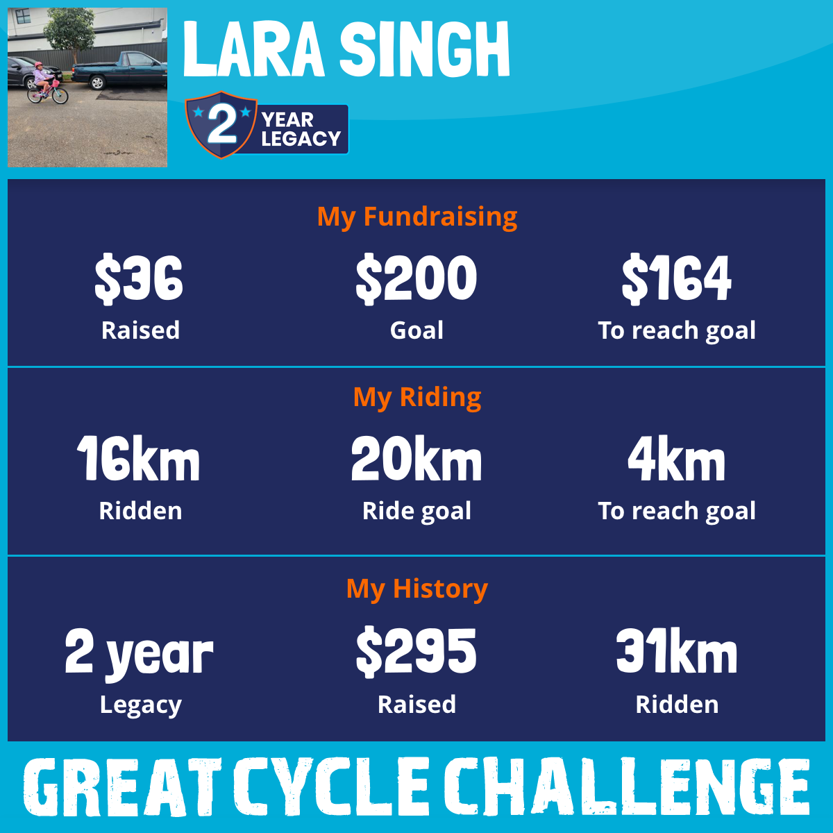 16 km Ridden$36 Raised2025