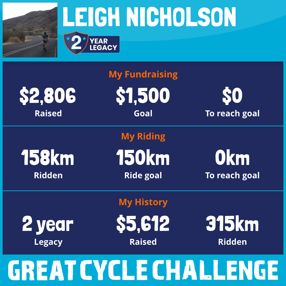 158 km Ridden$2,806 Raised2026