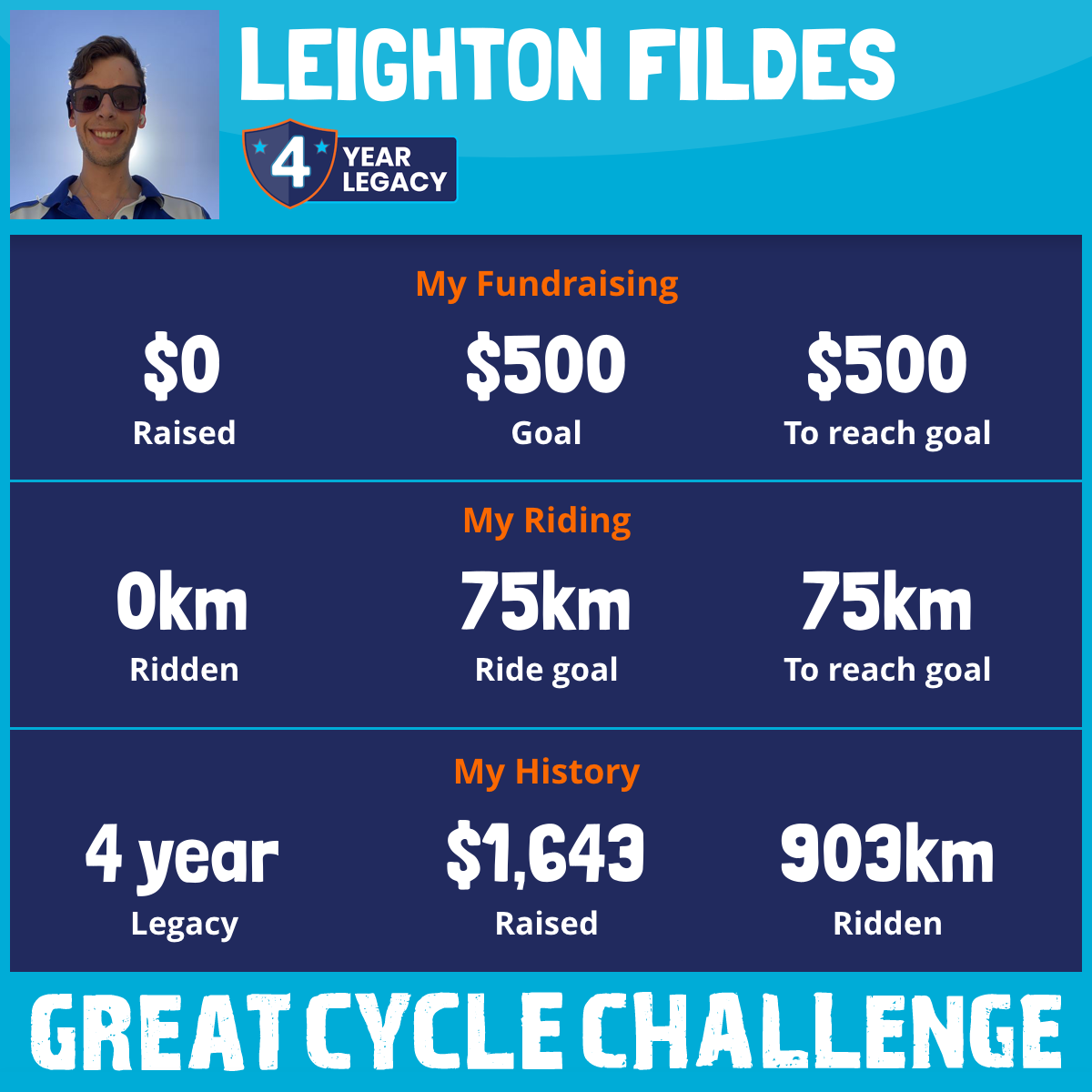 I am riding 75 km in memory of Trevor Fildes. Please sponsor me and support my challenge to fight kids' cancer and save little lives.