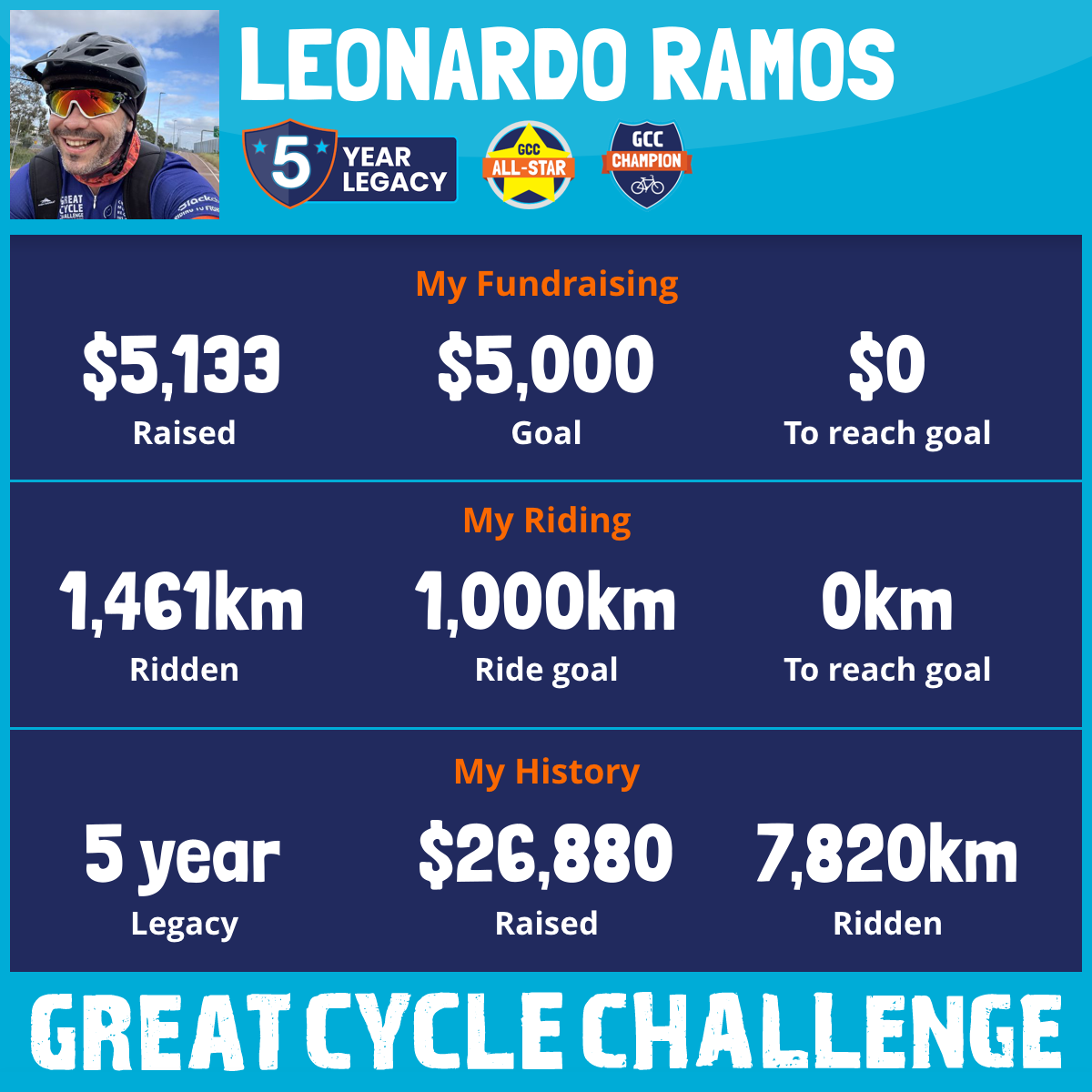 1,461 km Ridden$5,133 Raised2026