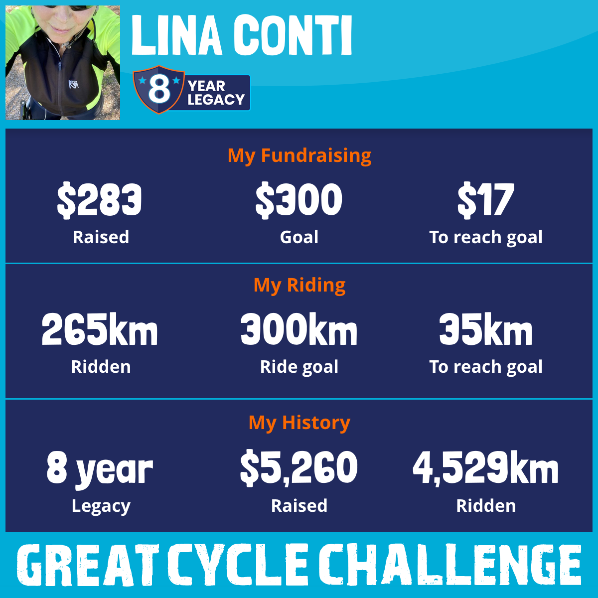 265 km Ridden$283 Raised2026