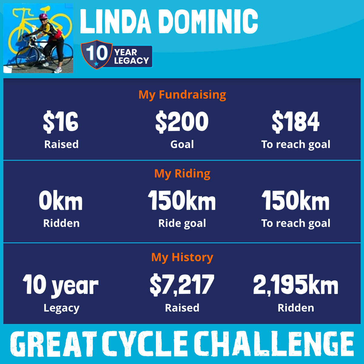 This October, for the 10th year, I am taking part in the Great Cycle Challenge to fight kids' cancer!