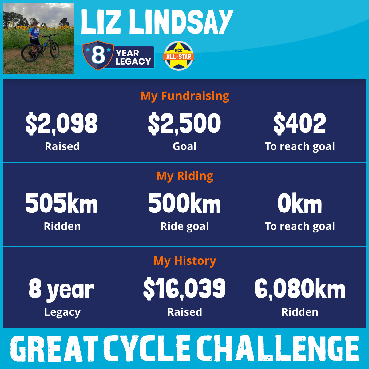 505 km Ridden$2,098 Raised2025