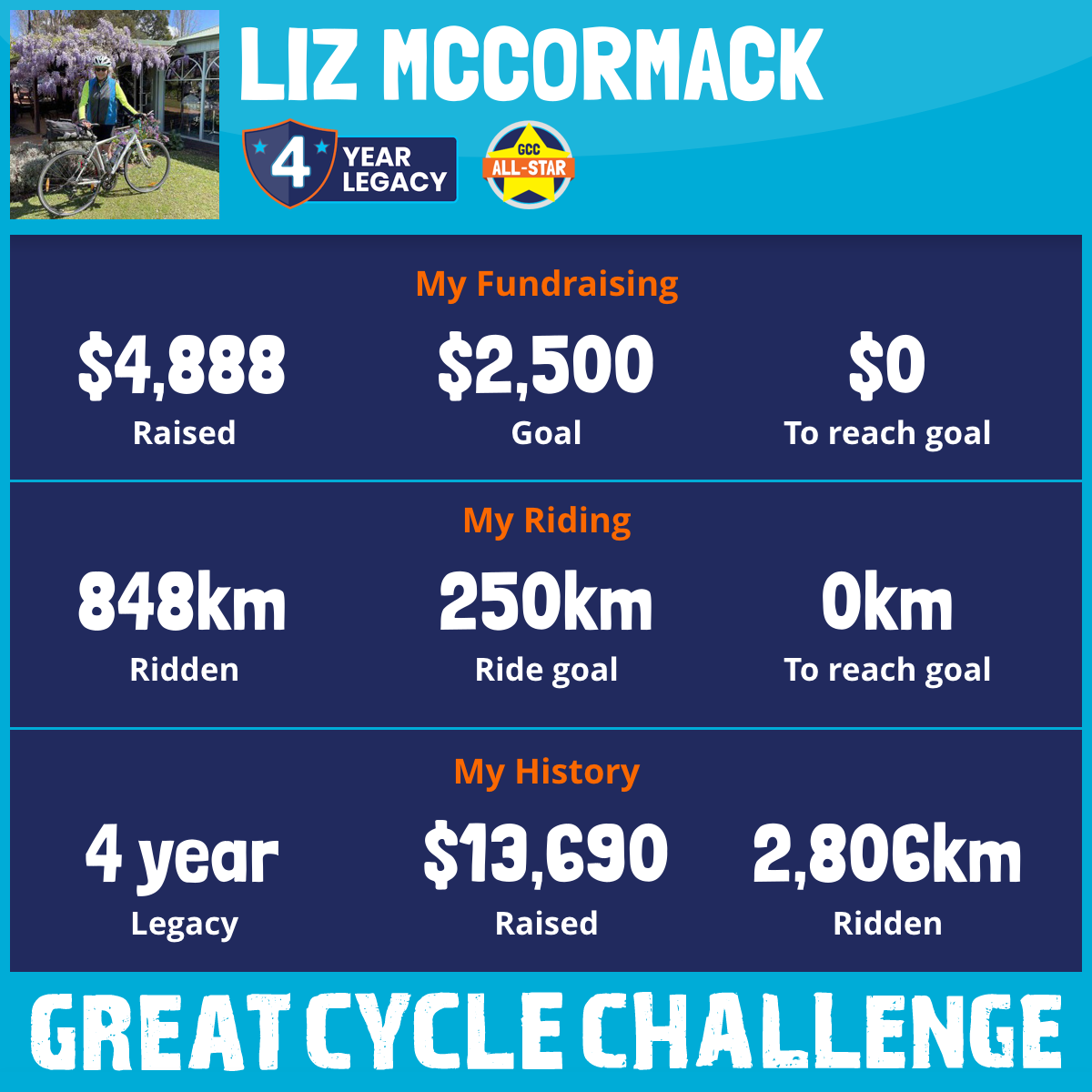 848 km Ridden$4,888 Raised2026