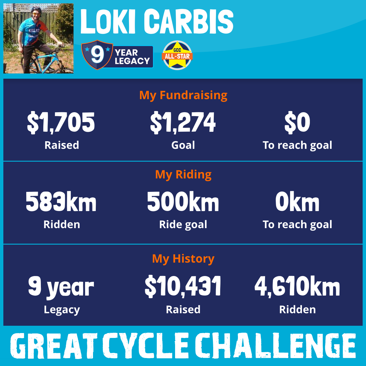 583 km Ridden$1,705 Raised2026
