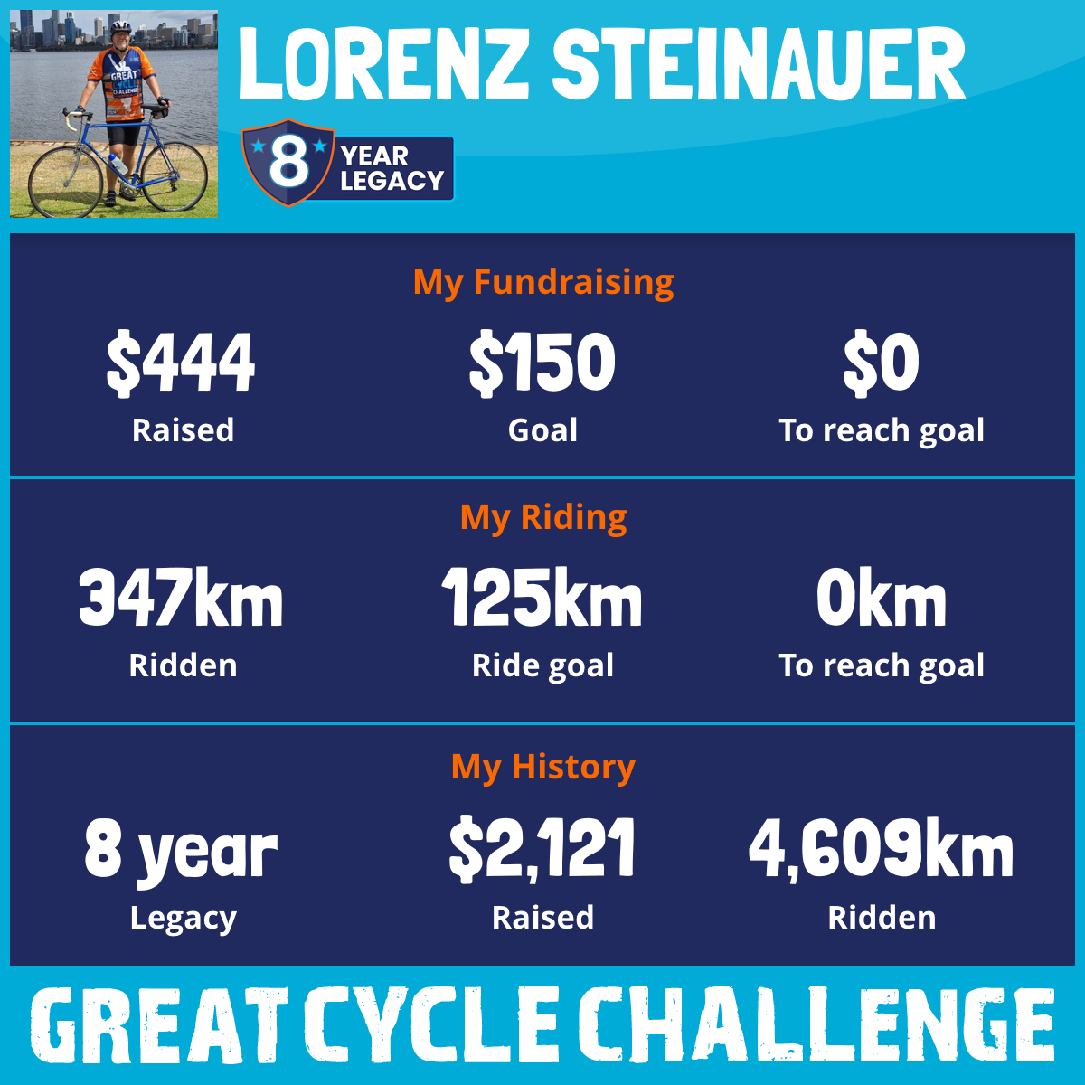 347 km Ridden$444 Raised2026