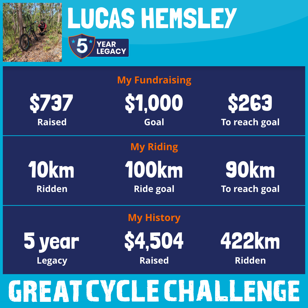 137 km Ridden$1,125 Raised2023