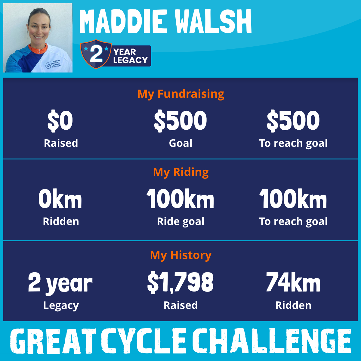 74 km Ridden$1,798 Raised2024
