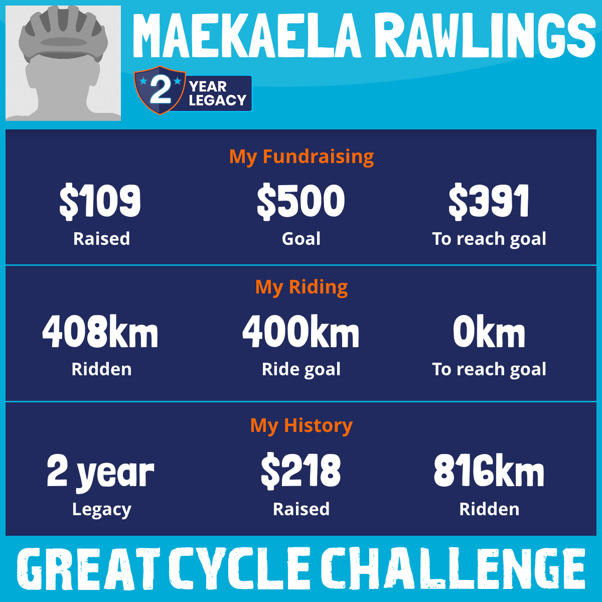 408 km Ridden$109 Raised2026